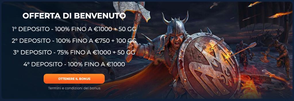 Il bonus di benvenuto di Axe Casino è molto ricco e permette di ottenere numerosi vantaggi, in modo particolare con un deposito di importo elevato.